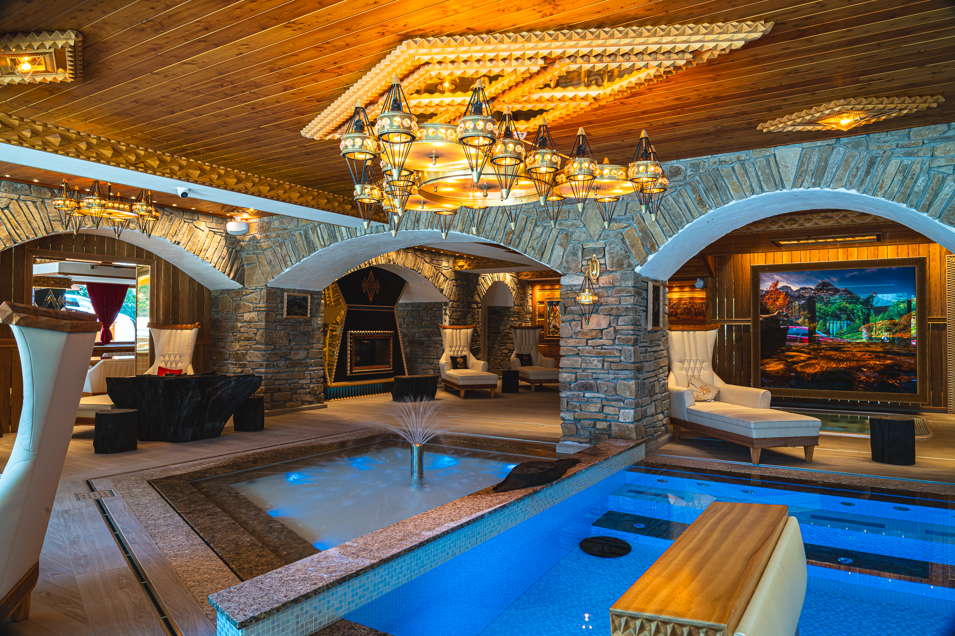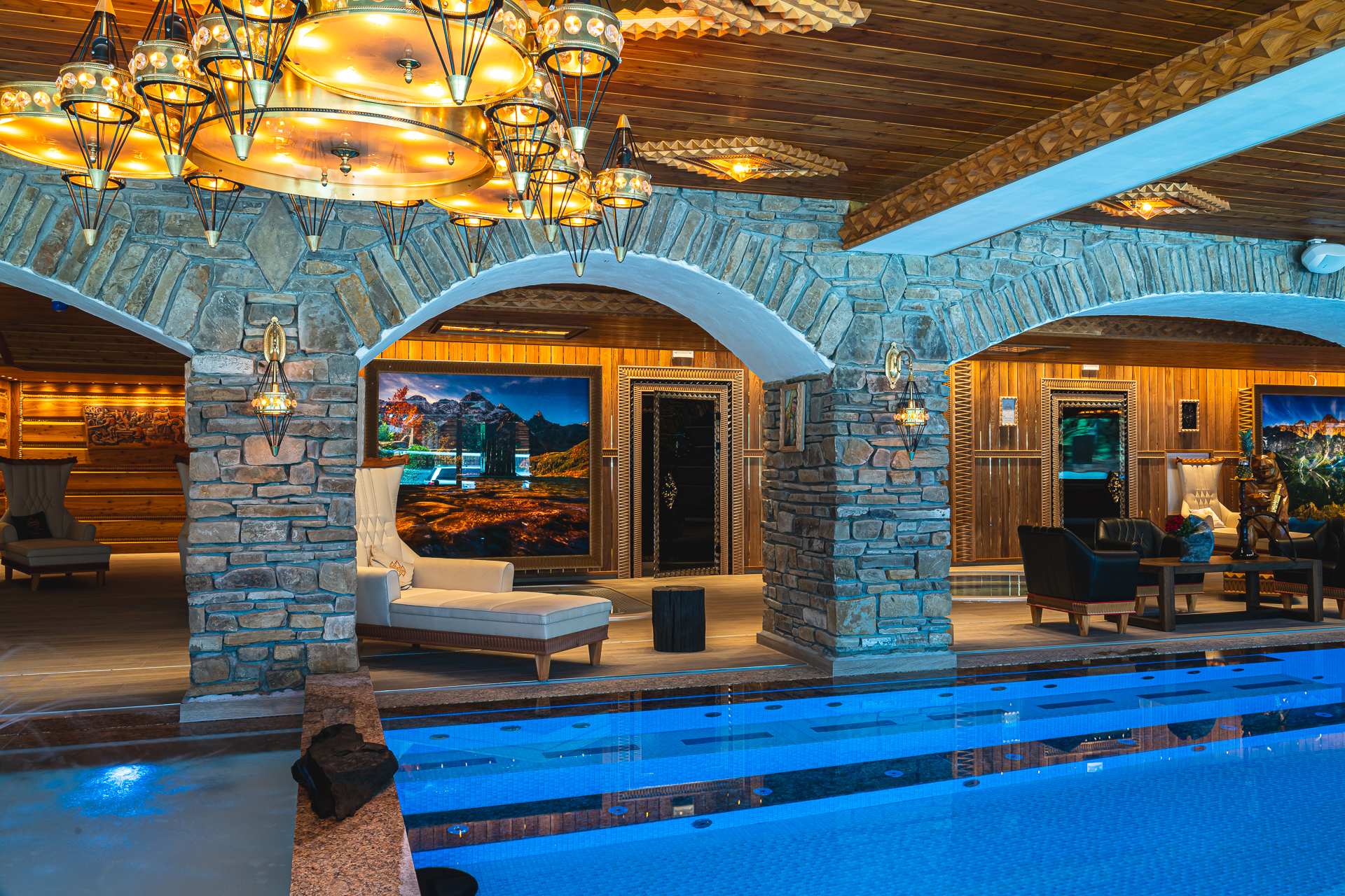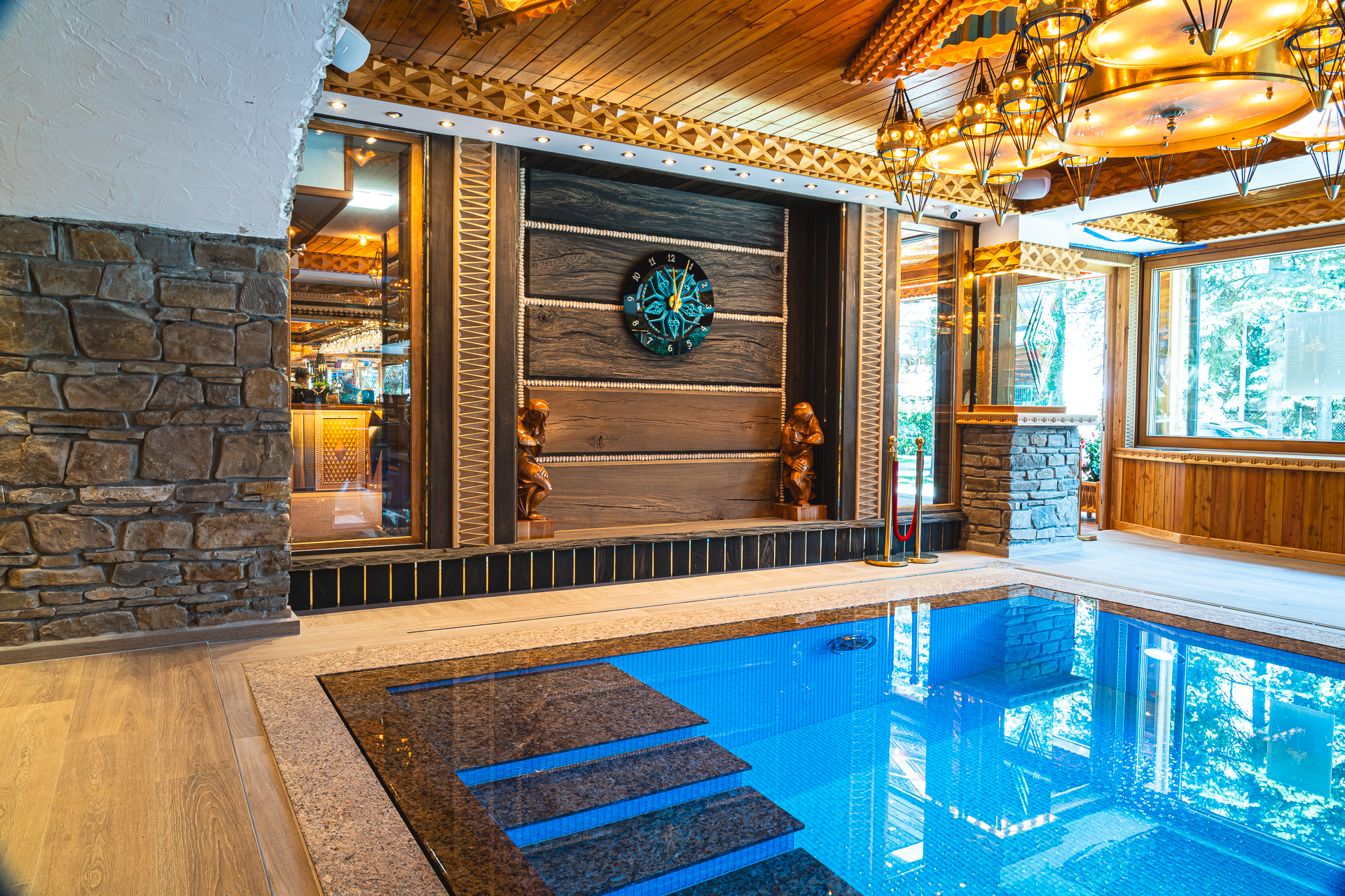 Otwórz drzwi do rajskiego zakątka, gdzie wnętrza w stylu góralskim otaczają Cię ciepłem i przytulnością. Czeka na Ciebie basen, gdzie możesz popływać, relaksujące jacuzzi, które otuli Cię delikatnymi bąbelkami, oraz strefa odpoczynku, gdzie czas płynie wolniej.